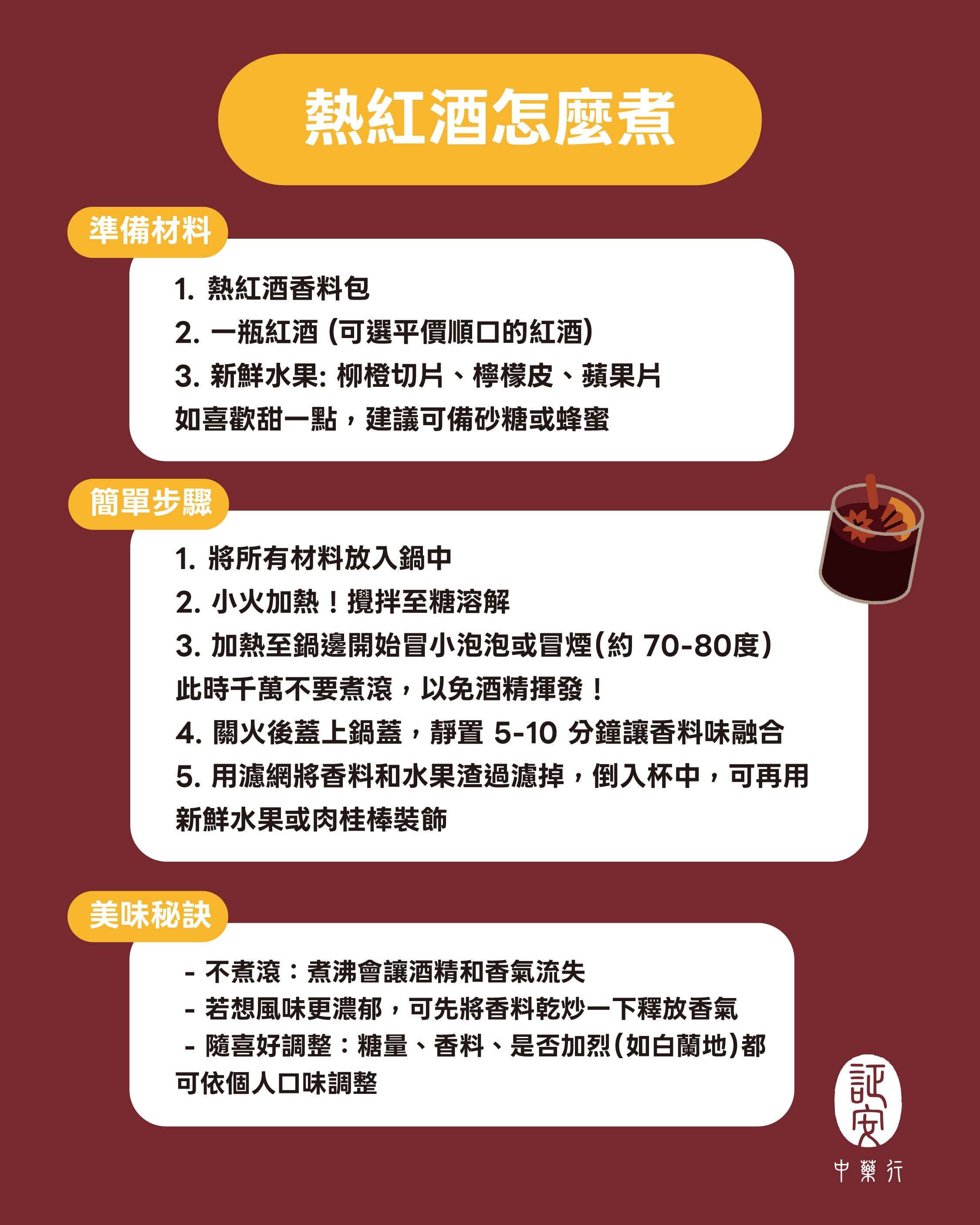 只需紅酒一瓶,加入香料包與少許糖,即可在家輕鬆調出屬於你的「冬季浪漫香氣」。